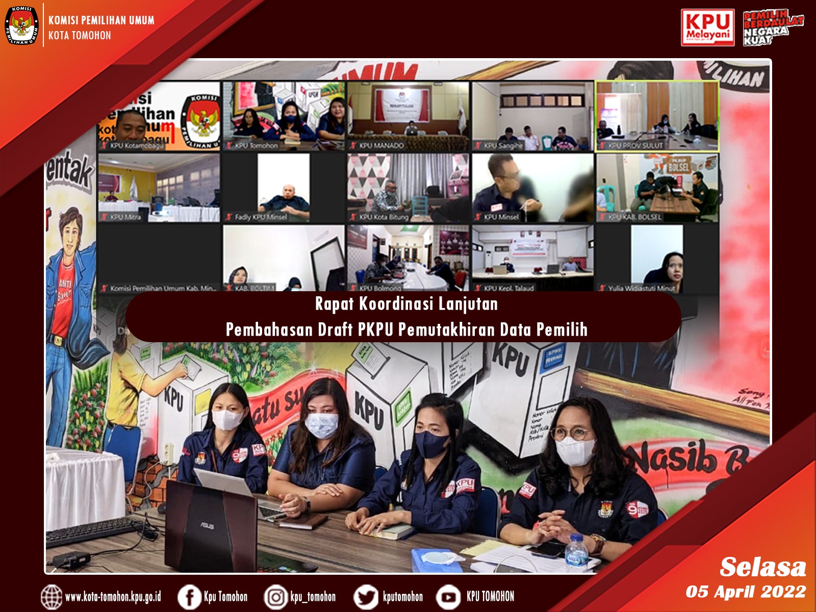 Tomohon, kota-tomohon.kpu.go.id - KPU Kota Tomohon mengikuti Rapat Koordinasi Lanjutan Pembahasan Draft PKPU Pemutakhiran Data Pemilih yang diselenggarakan KPU Provinsi Sulawesi Utara secara daring (05/04).