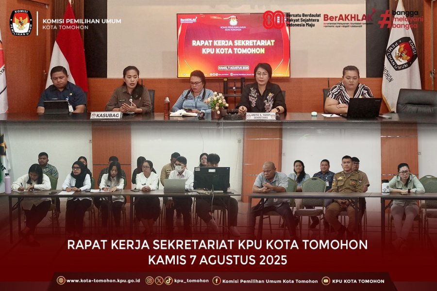 Tomohon, kota-tomohon.kpu.go.id - KPU Kota Tomohon melaksanakan Rapat Kerja Sekretariat bertempat di Aula Kantor KPU Kota Tomohon, Kamis 7 Agustus 2025.