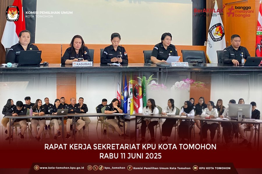 Tomohon, kota-tomohon.kpu.go.id - Menindaklanjuti Putusan dalam Rapat Pleno Rutin, KPU Kota Tomohon melaksanakan Rapat Kerja Sekretariat KPU Kota Tomohon yang bertempat di Aula Kantor KPU Kota Tomohon, Rabu 11 Juni 2025.