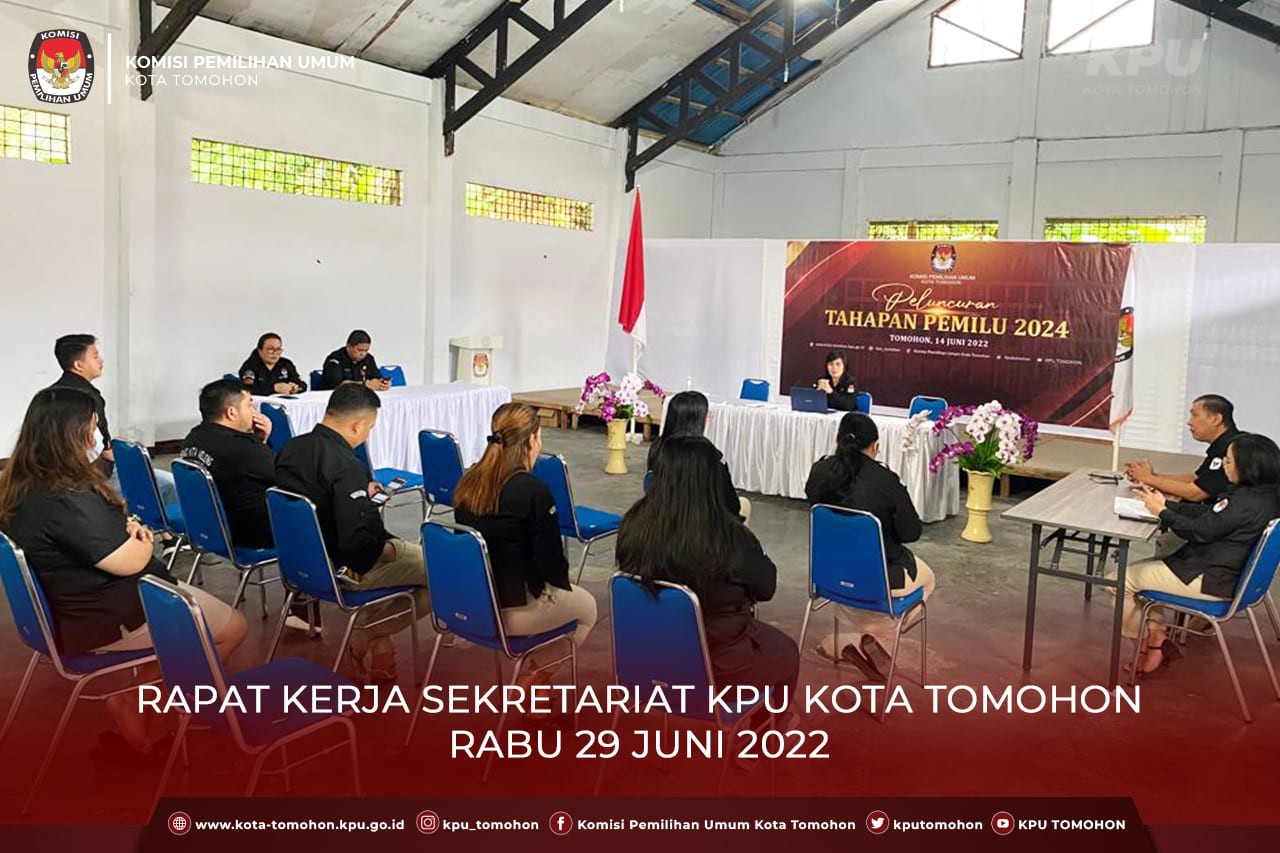 Tomohon, kota-tomohon.kpu.go.id - Komisi Pemilihan Umum Kota Tomohon melaksanakan Rapat Kerja Sekretariat, bertempat di Kantor KPU Kota Tomohon yang dipimpin langsung oleh Sekretaris Stella Sompe (29/6). Rapat ini mengevaluasi tentang tugas, fungsi, wewenang PNS dan PPNPN serta langkah- langkah yang akan ditempuh untuk menciptakan lingkungan kerja yang nyaman serta meningkatkan kinerja sekretariat KPU Kota Tomohon.