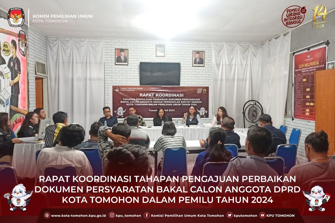 Rapat Koordinasi Tahapan Pengajuan Perbaikan Dokumen Persyaratan Bakal Calon Anggota DPRD Kota Tomohon dalam Pemilu Tahun 2024