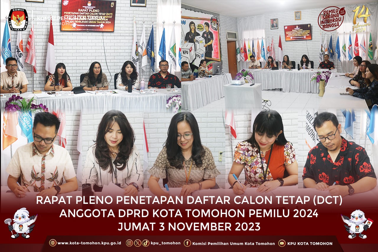 Rapat pleno ini diterbitkan surat keputusan KPU Kota Tomohon tentang DCT DPRD Kota Tomohon untuk pemilu 2024, namun hasil SK tersebut tidak langsung dapat diketahui oleh publik langsung pada hari ini, karena sesuai dengan PKPU bahwa SK penetapan DCT tersebut akan diumumkan pada Sabtu 4 November 2024.