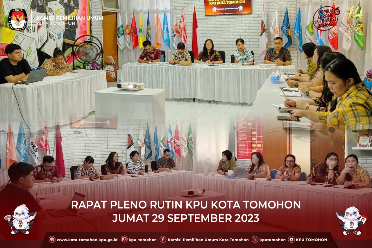 Rapat Pleno Rutin KPU Kota Tomohon Jumat 29 September 2023