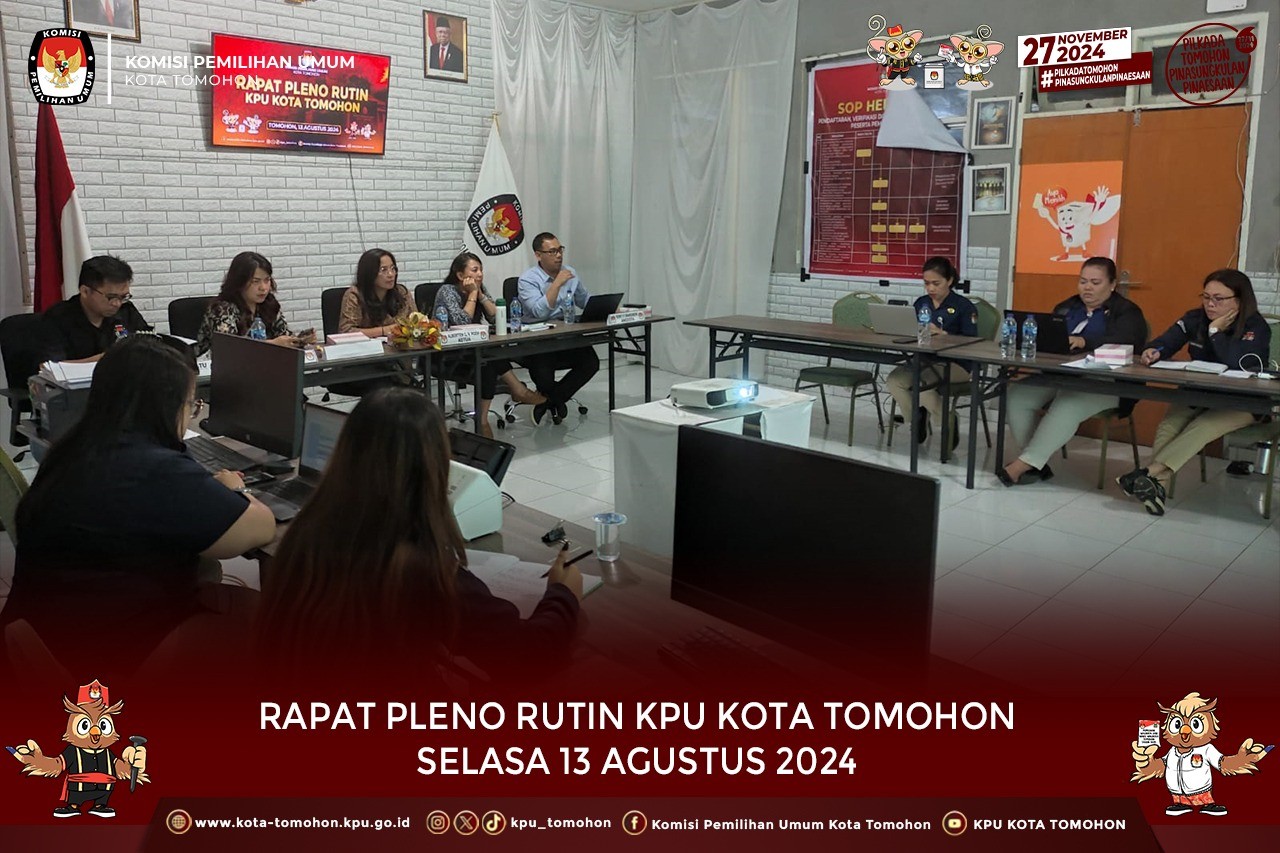 Rapat Pleno Rutin KPU Kota Tomohon Selasa 13 Agustus 2024