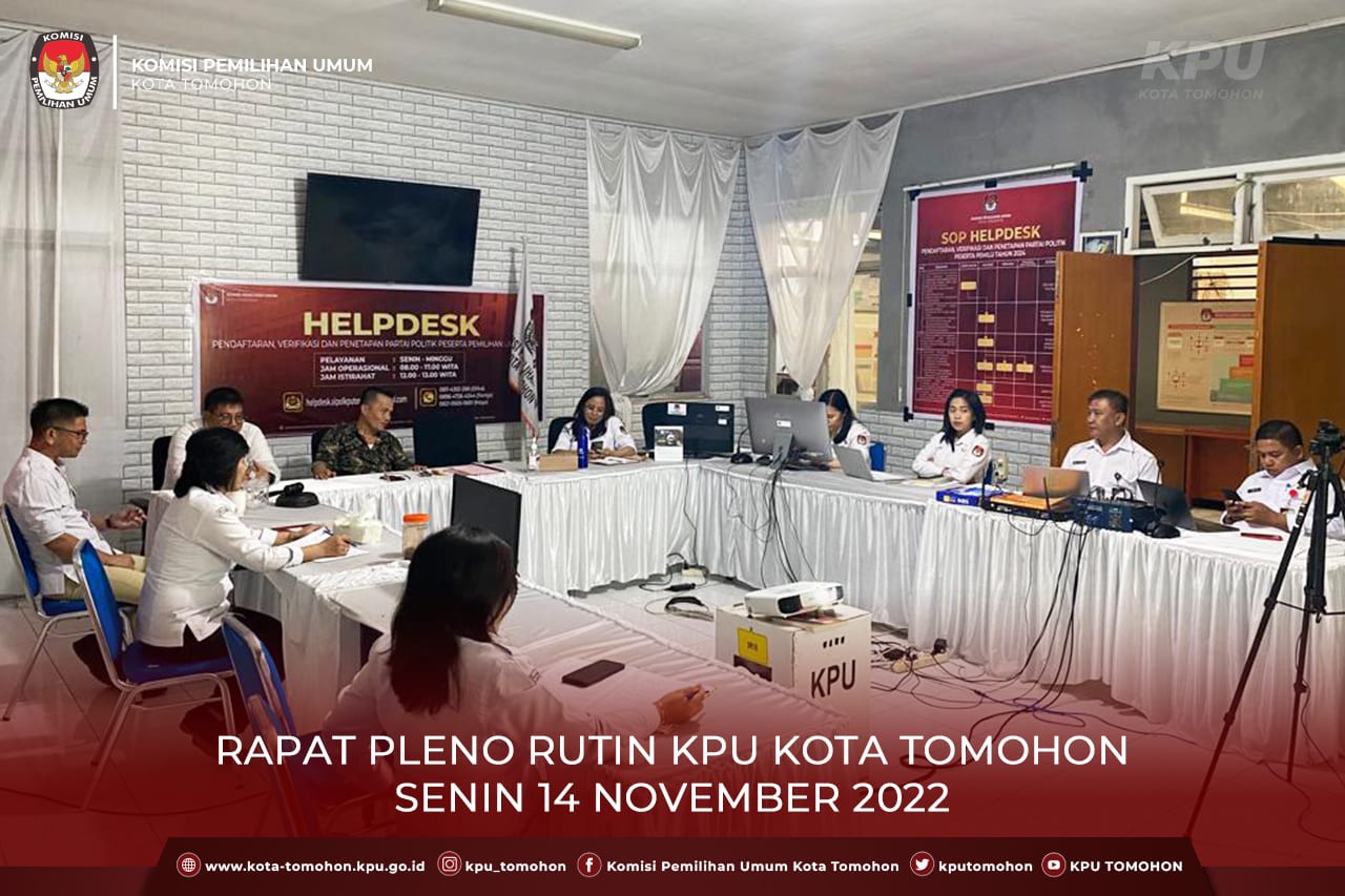 Rapat Pleno Rutin KPU Kota Tomohon Senin 14 November 2022