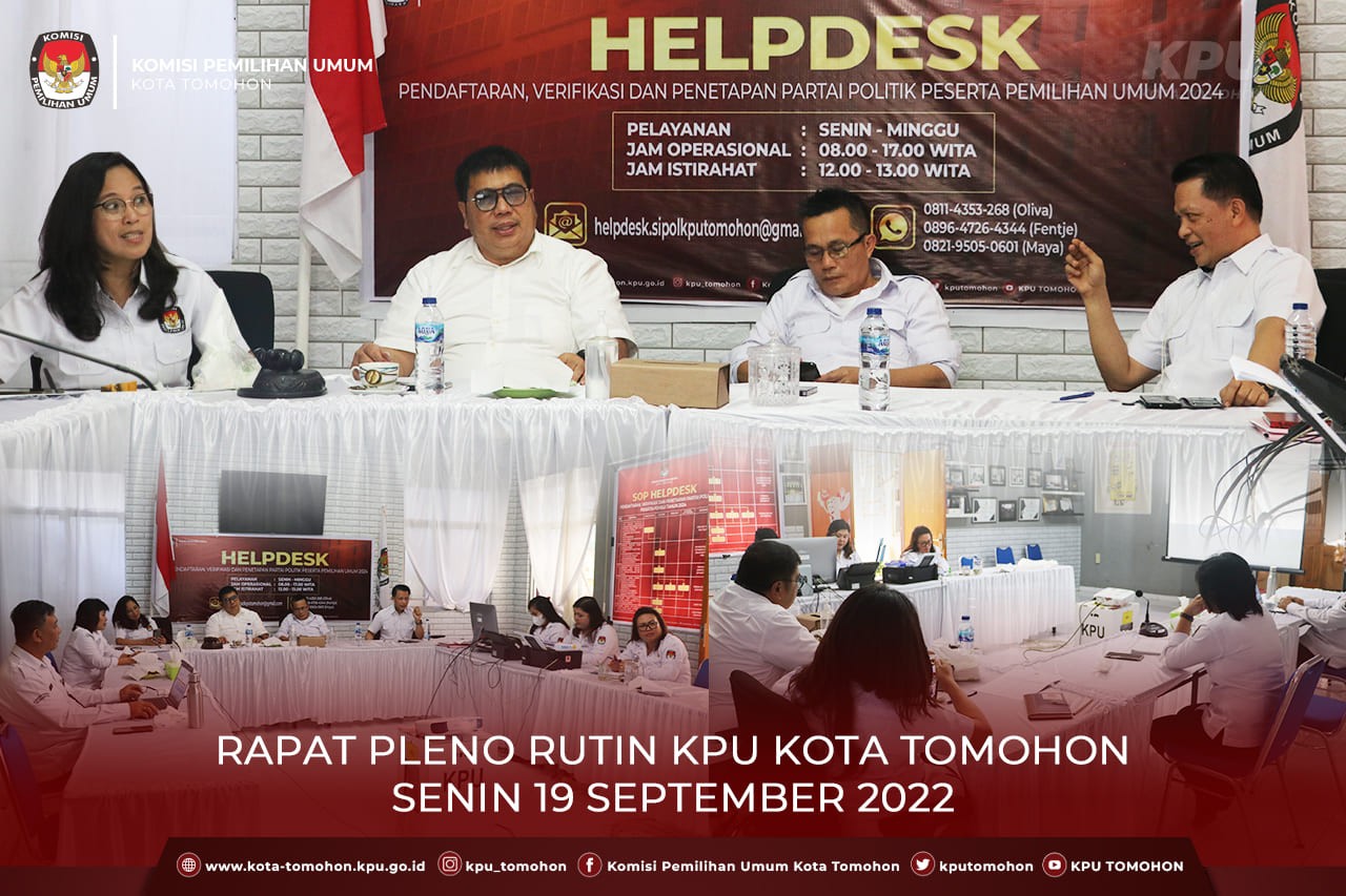 Rapat Pleno Rutin KPU Kota Tomohon Senin 19 September 2022