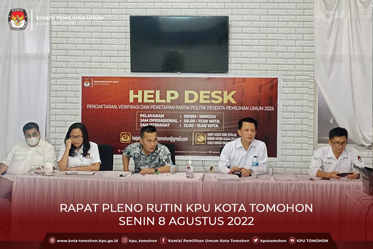 Rapat Pleno Rutin KPU Kota Tomohon Senin 8 Agustus 2022