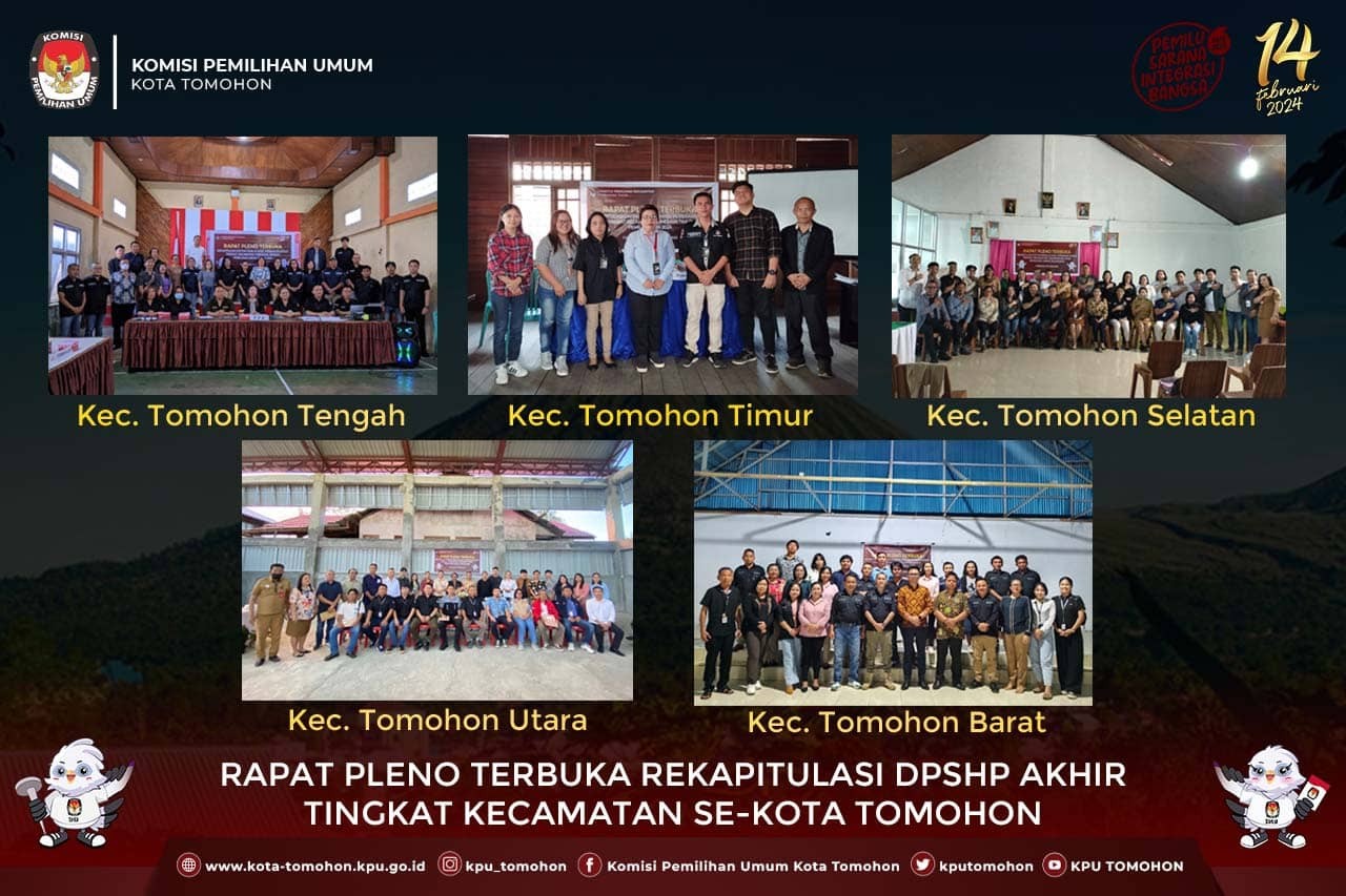 Tomohon, kota-tomohon.kpu.go.id - KPU Kota Tomohon melakukan monitoring pelaksanaan Rapat Pleno Terbuka Rekapitulasi Daftar Pemilih Hasil Perbaikan DPSHP Tingkat Kecamatan se-Kota Tomohon pada tanggal 3 dan 5 Juni 2023 sesuai tahapan.