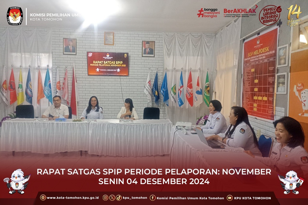 Tomohon, kota-tomohon.kpu.go.id - Satuan Tugas (Satgas) Sistem Pengendalian Internal Pemerintah (SPIP) KPU Kota Tomohon gelar Rapat untuk membahas pelaporan kartu kendali periode bulan November Tahun 2023 di Ruang Rapat Kantor KPU Kota Tomohon pada Senin, 4 Desember 2023.