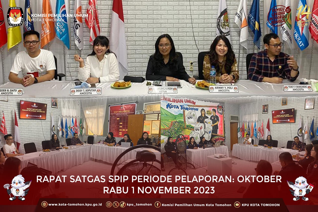 Tomohon, kota-tomohon.kpu.go.id - KPU Kota Tomohon gelar Rapat Satuan Tugas (Satgas) Sistem Pengendalian Internal Pemerintah (SPIP) Periode Laporan Bulan Oktober Tahun 2023 di Ruang Rapat Kantor KPU Kota Tomohon pada Rabu, 1 Oktober 2023.