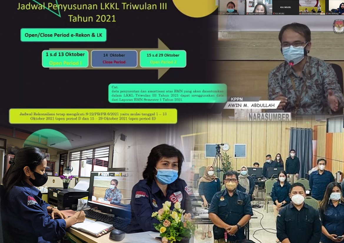 Awin menegaskan jadwal Penyusunan LKKL TW III Tahun 2021, dimana Open Period I Tanggal 1 – 13 Oktober 2021, Close Period 14 Oktober 2021 dan Open Period II 15 – 29 Oktober 2021, yang sekalipun akan dibuka Period II, namun beliau berharap semua satker di lingkungan KPU Provinsi Sulawesi Utara sudah menyelesaikan e-rekon dan LK pada Periode I.