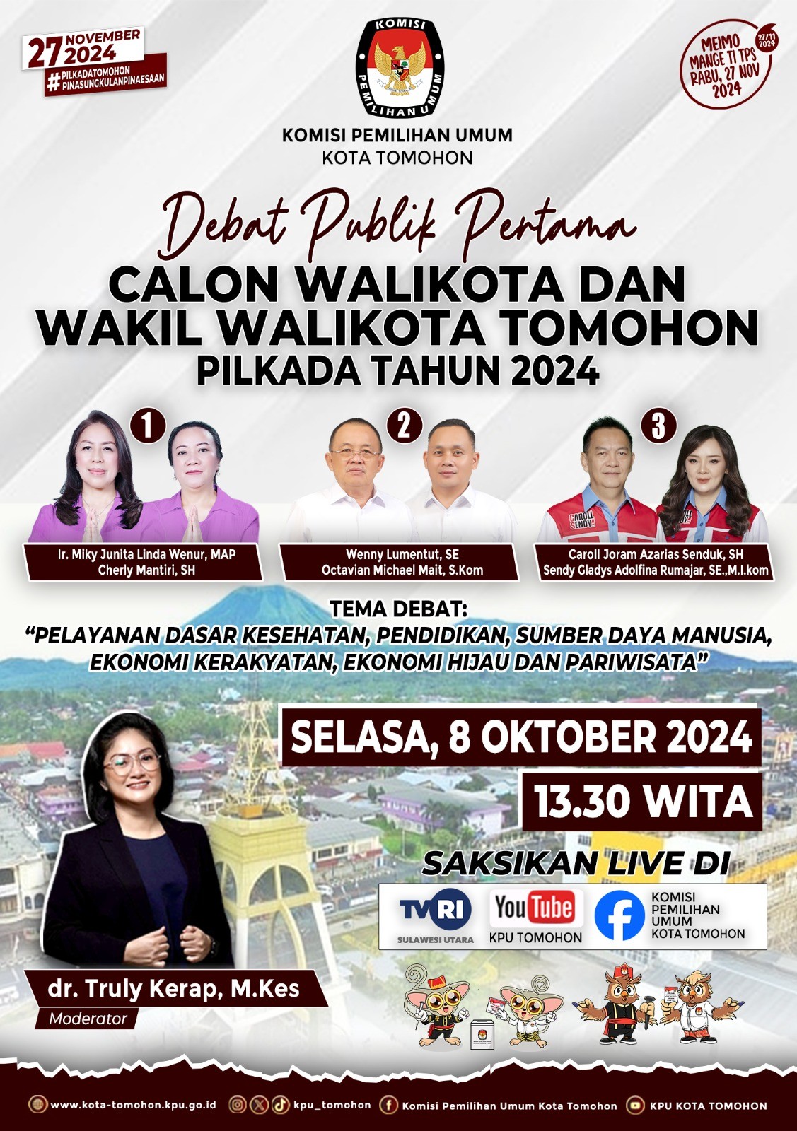 Saksikan Debat Publik Pertama Calon Walikota dan Wakil Walikota Tomohon Tahun 2024 | Selasa, 8 Oktober 2024