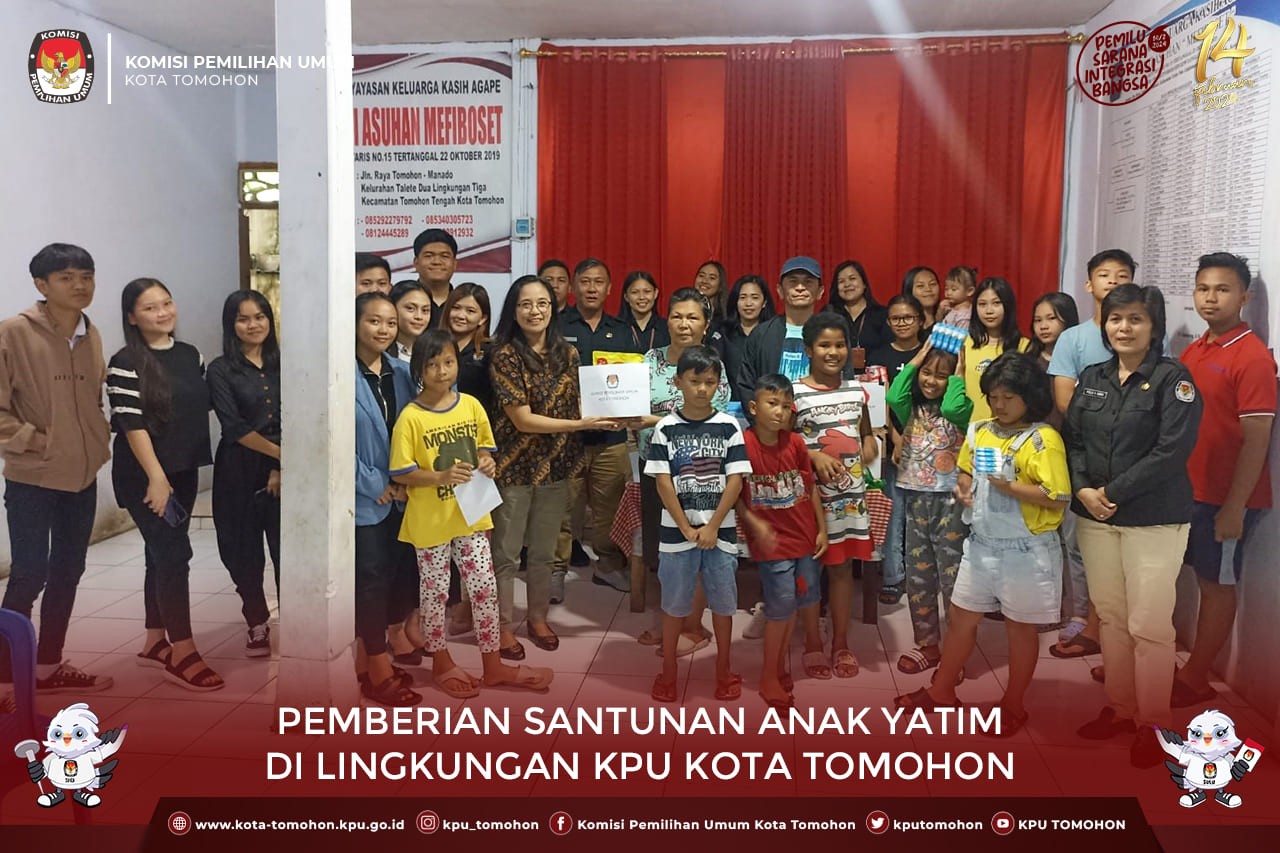 Santunan diserahkan langsung oleh seluruh jajaran KPU Kota Tomohon. Kegiatan ini digelar dalam rangka mempererat tali silaturahmi dan untuk meningkatkan solidaritas antar sesama di Bulan Ramadhan.