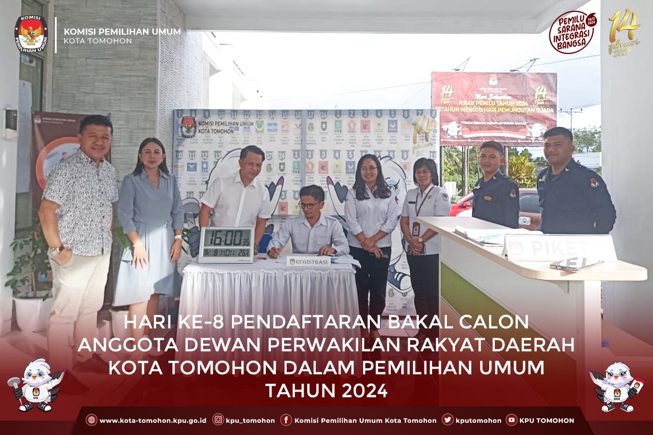 Tomohon, kota-tomohon.kpu.go.id - Sampai dengan Senin (8/5), belum ada Parpol yang mendaftarkan calon legislatif-nya di Kantor KPU Kota Tomohon. Nampak komisioner dan sekretaris KPU Kota Tomohon, bersama pimpinan Bawaslu Kota Tomohon saat menutup buku registrasi pendaftaran pada pukul 16:00 Wita