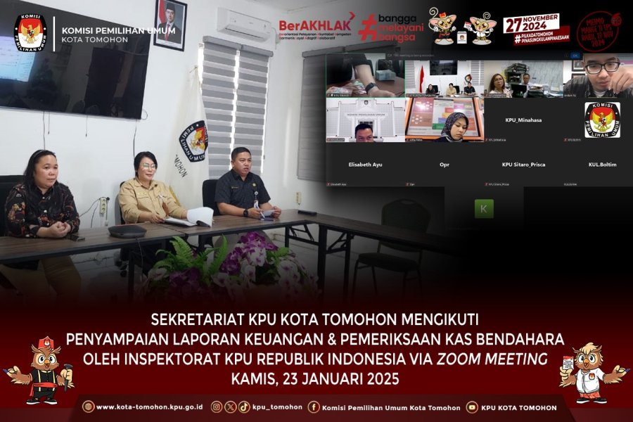 Sekretariat KPU Kota Tomohon mengikuti Penyampaian Laporan Keuangan & Pemeriksaan Kas Bendahara oleh Inspektorat KPU RI via Zoom Meeting