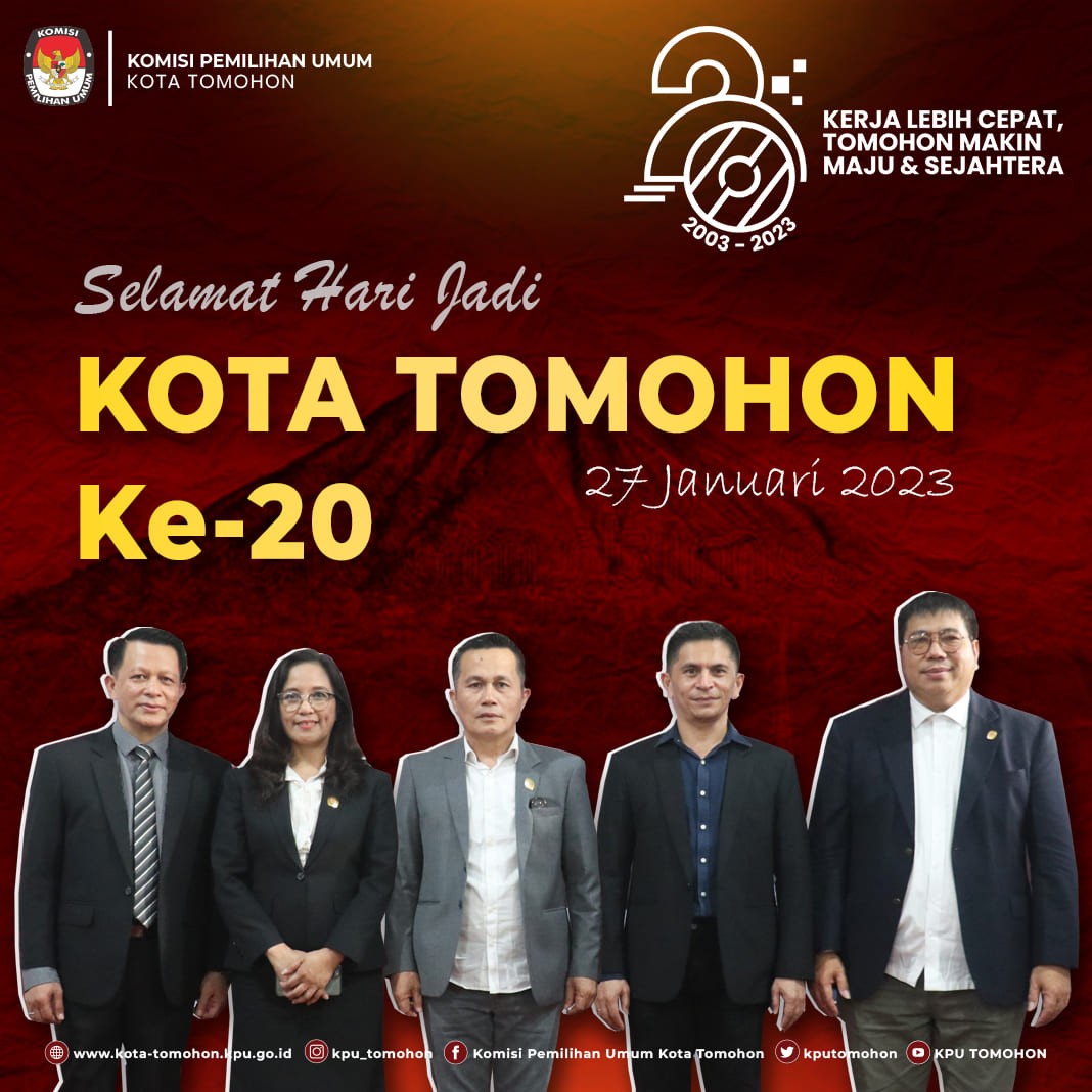 Keluarga Besar Komisi Pemilihan Umum Kota Tomohon Mengucapkan Selamat Ulang Tahun Kota Tomohon ke-20.