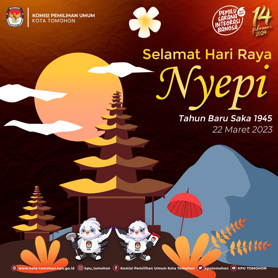 Segenap Keluarga Besar Komisi Pemilihan Umum Kota Tomohon mengucapkan Selamat Hari Raya Nyepi Tahun Baru Saka 22 Maret 2023.