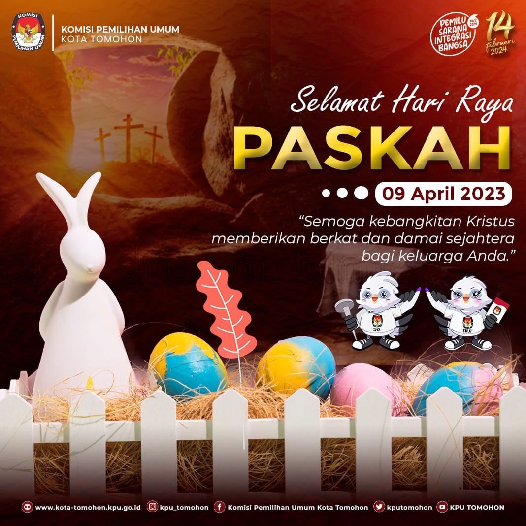 Keluarga Besar Komisi Pemilihan Umum Kota Tomohon mengucapkan Selamat Hari Raya Paskah 09 April 2023.