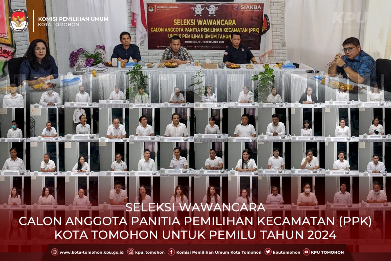 Tomohon, kota-tomohon.kpu.go.id - KPU Kota Tomohon menggelar Seleksi Wawancara calon anggota Panitia Pemilihan Kecamatan (PPK) untuk Pemilihan Umum Tahun 2024, yang berlangsung selama 2 hari pada tanggal 12 dan 13 Desember 2022.