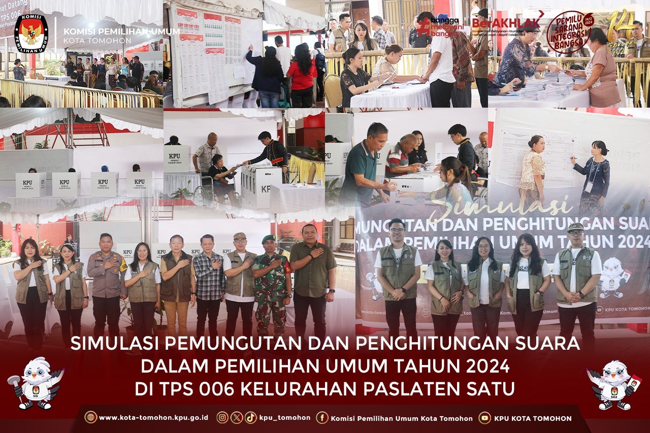 Tomohon, kota-tomohon.kpu.go.id - KPU Tomohon menggelar Simulasi Pemungutan dan Penghitungan Suara oleh KPPS TPS 006 Kelurahan Paslaten Satu, Kecamatan Tomohon Timur, Kota Tomohon bertempat di Anugerah Hall Tomohon.
