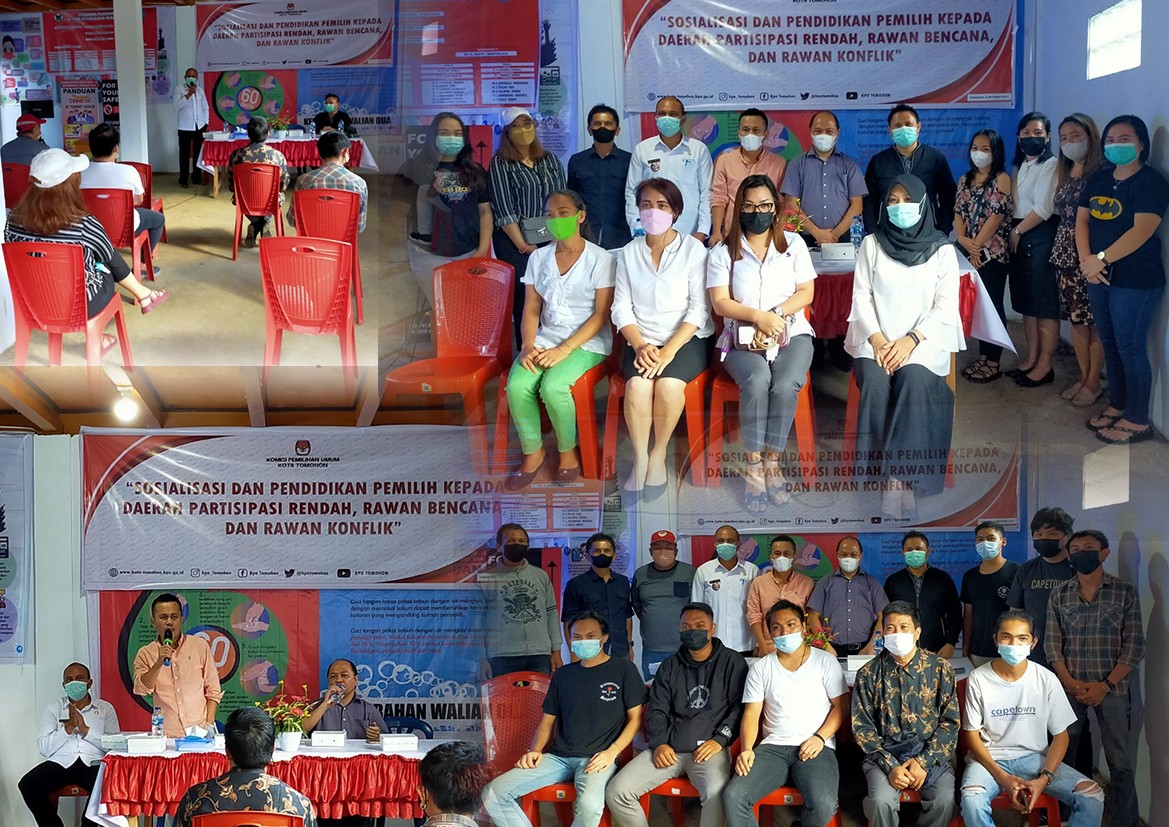Tomohon, 6 Oktober 2021. KPU Kota Tomohon melaksanakan kegiatan Sosialisasi dan Pendidikan Pemilih bagi Daerah yang masuk kategori Partisipasi Pemilih Rendah, Rawan Bencana dan Rawan Konflik Dimana kegiatan ini dilaksanakan di Kelurahan Walian Dua dimana dalam rekapitulasi hasil Partisipasi Pemilih Kelurahan Walian Dua ini masuk dalam 3 besar kategori partisipasi rendah. Di kegiatan ini KPU Kota Tomohon menghadirkan dua Narasumber yaitu