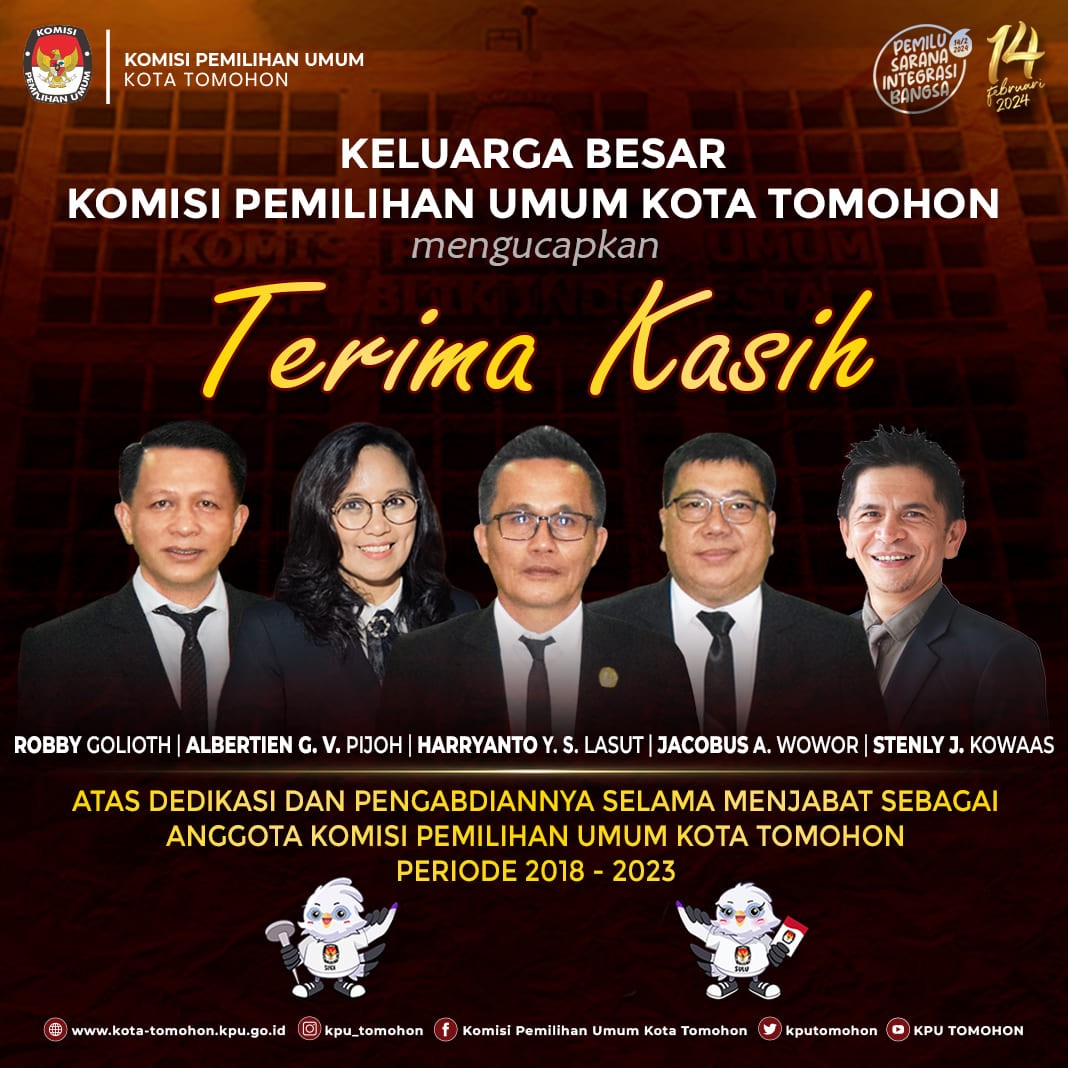Terima Kasih Atas Dedikasi dan Pengabdiannya Selama Menjabat Sebagai Anggota KPU Kota Tomohon Periode 2018-2023