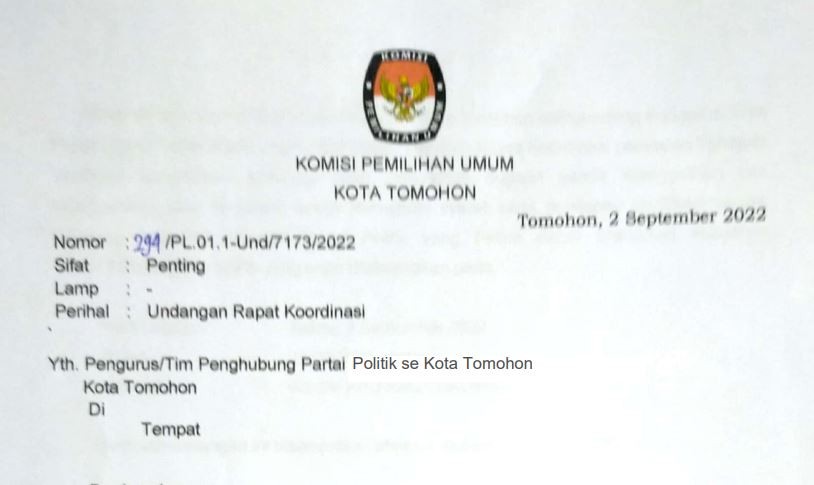 Undangan Rapat Koordinasi Verifikasi Administrasi Terhadap Surat Pernyataan Dugaan Keanggotaan Ganda dan Keanggotaan yang Berpotensi Belum Memenuhi Syarat Partai Politik Jumat, 02 September 2022 19:00 57 klik link Undangan Rapat Koordinasi Bagikan: Dilihat 57 Kali.