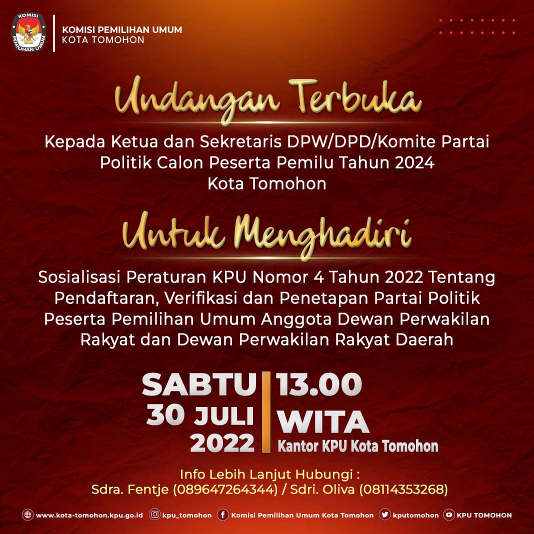 Undangan Terbuka Sosialisasi Peraturan KPU Nomor 4 Tahun 2022