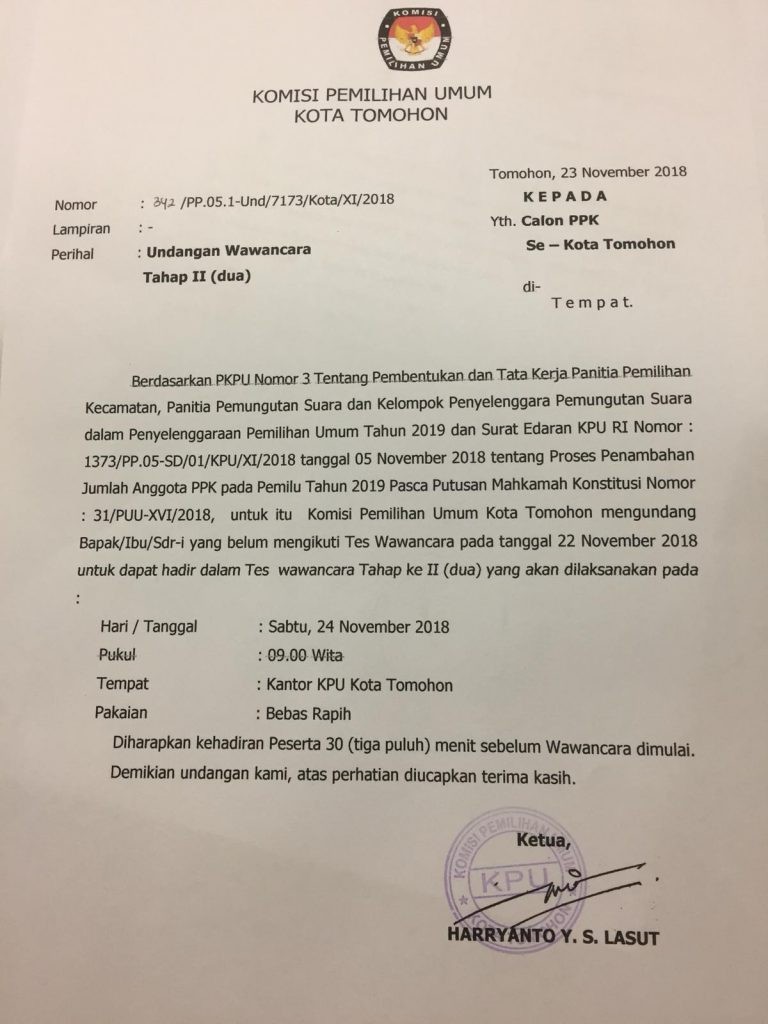 Undangan Wawancara Tahap II Calon PPK Se-Kota Tomohon