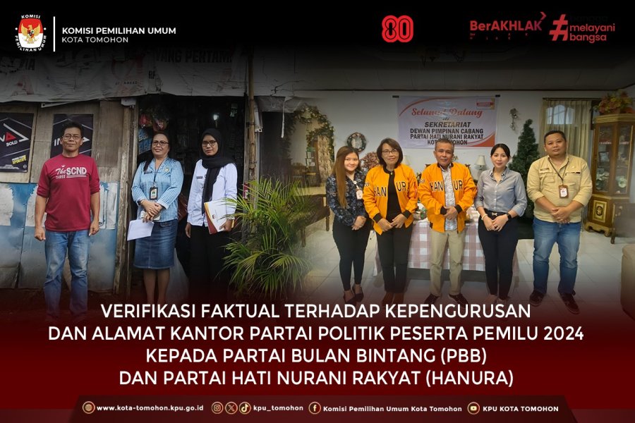 Kegiatan ini merupakan bagian dari tahapan penting, yang bertujuan untuk menjamin keterbukaan dan legalitas keberadaan Partai Politik di Kota Tomohon khususnya untuk memastikan kesesuaian alamat kantor tetap partai politik yang tercantum dalam Sistem Informasi Partai Politik (SIPOL) dengan kondisi di lapangan Pasca Pemutakhiran Data Partai Politik Semester I.