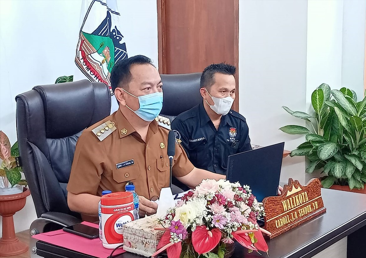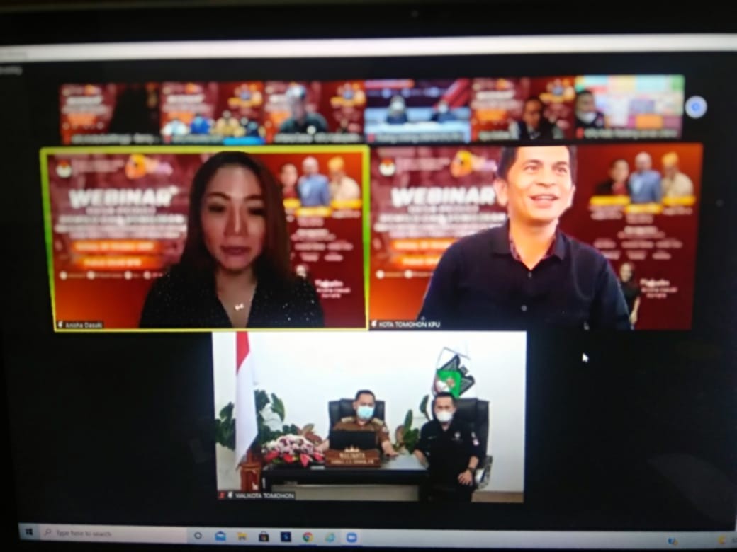 Webinar Desa Peduli Pemilu dan Pemilihan Seri 7 : Jadi Narasumber, Wali Kota dan KPU Tomohon presentase Progres PDP3