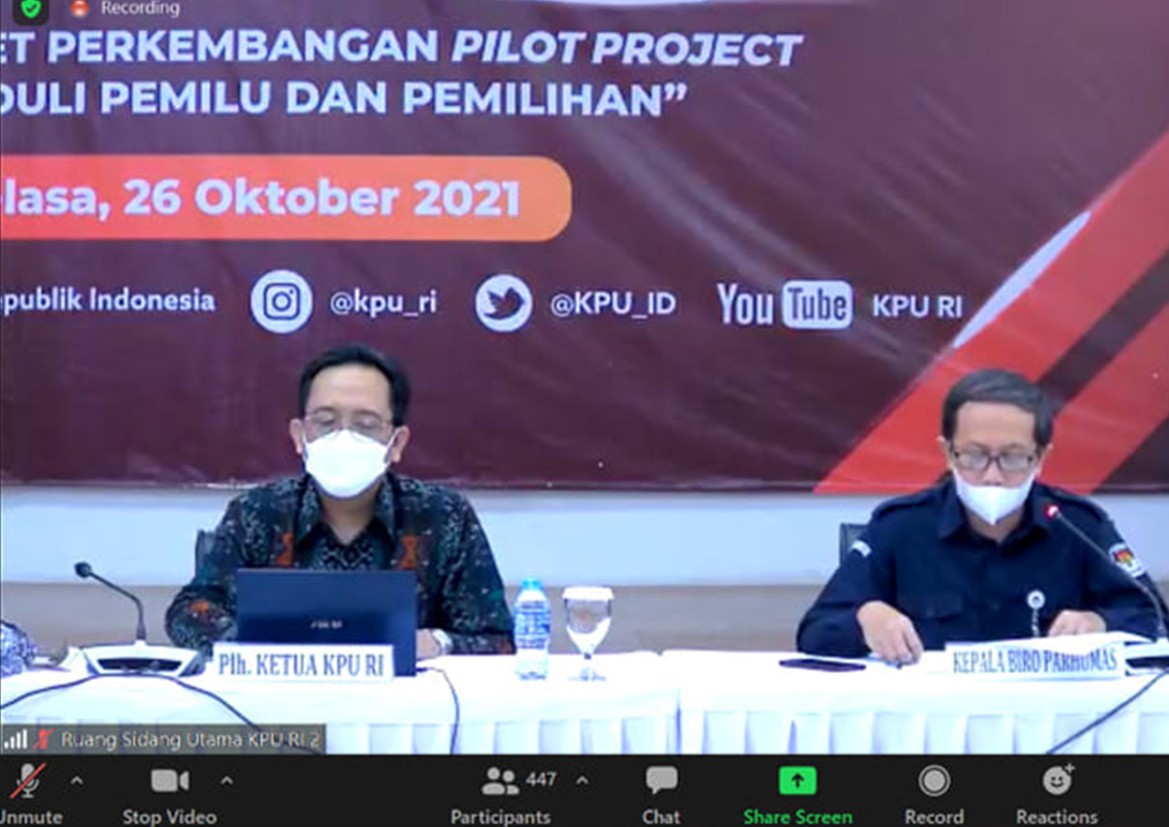Tomohon, 26 Oktober 2021. Komisi Pemilihan Umum Kota Tomohon mengikuti Webinar Desa Peduli Pemilu dan Pemilihan Seri ke-7 dengan Tema "Potret Perkembangan Pilot Project Desa Peduli Pemilu dan Pemilihan di Berbagai Daerah di Indonesia". Plh Ketua KPU RI, I Dewa Kade Wiarsa Raka Sandi bersama Kepala Biro Partisipasi dan Hubungan Masyarakat, Cahyo Ariawan secara langsung membuka kegiatan ini.
